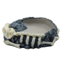 Поилка-кормушка для рептилий – специальная посуда, которую используют в террариумах, где живут гекконы, агамы, хамелеоны, змеи и т.п. Внешняя поверхность кормушки имитирует поверхность камня. Это создает естественную среду для рептилий. Декоративные элементы в виде черепа и костей делают террариум визуально привлекательным для зрителей, улучшая его внешний вид.