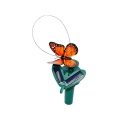 Бабочка присоединена тонким проводом к маленькому моторчику (0,5В), который работает на солнечных батарейках. Моторчик вращает проводки, благодаря чему бабочки летают по кругу. Скорость их полёта зависит от яркости солнца, т.е. чем ярче светит солнце, тем быстрее летают бабочки. Однако, они могут летать и ночью в свете лампы.