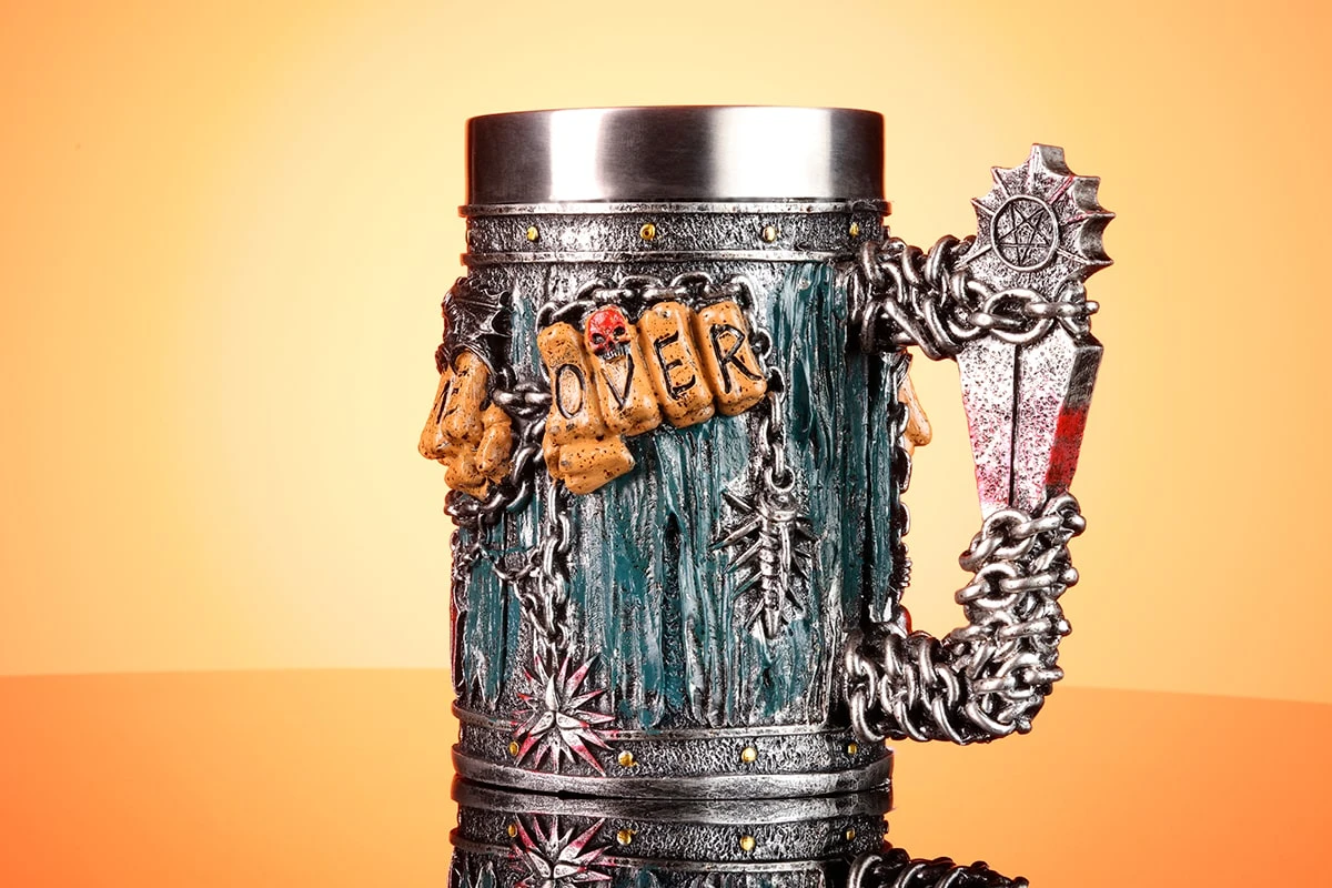 - Внутренняя часть и ободок из нержавеющей стали – чашка с надписью game over антикоррозионная, инертна к запахам, не окрашивается от напитков.