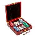 Яку розвагу можна придумати для компанії друзів? На подібне питання може прийти безліч цікавих відповідей. Покер, напевно, буде хорошим і цікавим варіантом для вечірнього проведення часу. Ми пропонуємо покерний набір на 300 фішок. Фішки з набору виготовляються з хорошого, якісного пластика і розфарбовуються відповідно номіналу. Номінал фішок: 1, 5, 10, 25 і 50. Фішок кожного номіналу в наборі по 60 шт. (Разом 300 шт.). У пропонований набір для покеру, крім різнокольорових фішок, входять 2 колоди карт і ігрове полотно зі штучного сукна з розміром 90х60 см., має розмітку для Блек Джека. Крім того, в покерний набір 300 фішок входять великі пластикові фішки малого, великого блайнда і мітка дилера. Набір для гри в покер укладається в коробку, зроблену з металу, зручну для зберігання. Настільна гра покер вже давно популярна у всьому світі і все більшу популярність отримує у нас. Придбавши набір, ви наочно зможете навчитися принципам захоплюючої гри, і навіть організовувати невеликі турніри, граючи з друзями, кількість фішок з набору дає можливість грати одночасно 6-м людям. Придбавши такий набір, ви відкриєте захоплюючий світ покеру з його багатогранністю і азартом.