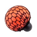 М'ячик зроблений з м'якого силікону. Стрессбол знаходиться в сітчастому мішечку. Його діаметр становить 5 см. Важить антистрес м'ячик 170 грам. Коли ви його стискаєте, крізь осередки видуваються бульбашки. При цьому кулька приймає різні форми. При зжиманні м'ячика зап'ястя і передпліччя відчувають напругу. Можна сказати, що цей предмет виконує ще функцію еспандера. Його корисно використовувати людям після травм кисті.